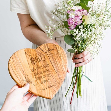 Brotzeitbrett in HerzformMit individueller Holzgravur