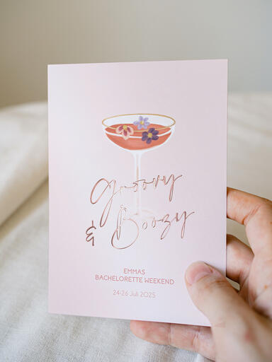 Gold, Silber, Roségold oder schimmernder Relieflack: mit unseren {{block1}} verleihst Du Deinen Einladungskarten zum Junggesellinnenabschied das gewisse Extra. Du bist noch unentschlossen, welche Veredelung es werden soll? Dann bestell Dir gerne {{block2}} zu Dir nach Hause. So kannst Du gleichzeitig auch unsere verschiedenen hochwertigen Papiersorten testen und ganz entspannt entscheiden, welche Kombination am besten zum Stil Deines JGAs passt.