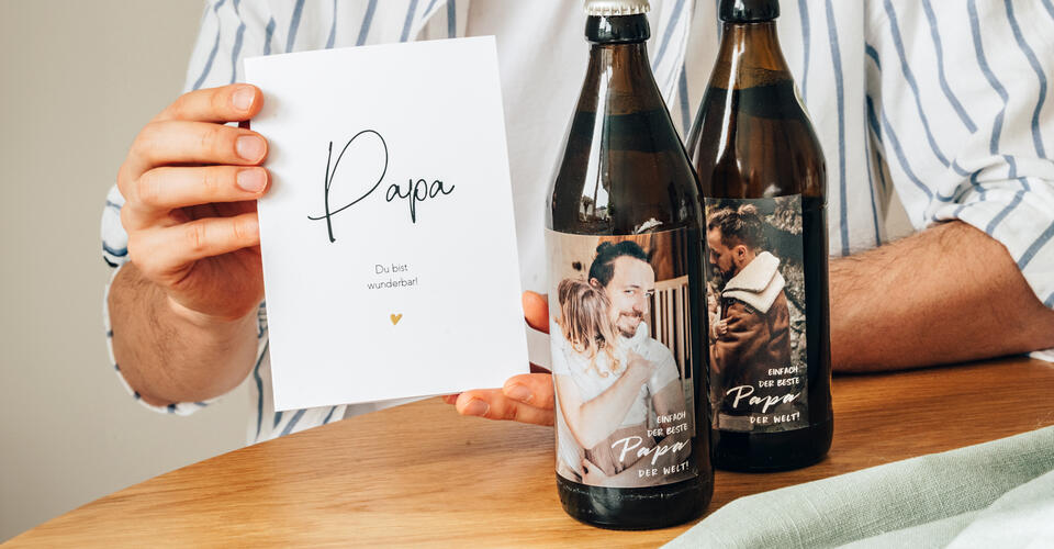 Personalisiere Wandbilder, Tassen und Bieretiketten mit eigenen Fotos. Oder verwandle Frühstücksbretter mit persönlicher Gravur für Deinen Papa in eine zauberhafte Erinnerung an Dich, die Familie und Eure schönsten gemeinsamen Momente.