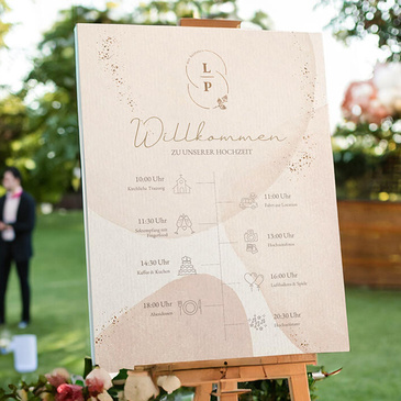 Es sind die liebevollen Details, die Eure Hochzeitsfeier zu einem unvergesslichen Ereignis machen. Aufmerksame Gesten wie herzliche Willkommensgrüße und individuell gestaltete Dekorationen verleihen Eurem Fest das gewisse Etwas und zaubern Familie und Freunden schon beim Ankommen ein Lächeln ins Gesicht.