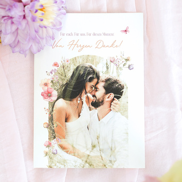 Euer großer Tag ist nun vorbei, Ihr seid noch voller Emotionen und möchtet alle Erinnerungen daran festhalten? Auch Euren Gästen gebührt ein kleines Dankeschön in Form eines persönlichen Grußes. Hier findet Ihr Produkte mit Fotos und persönlichen Texten, die Euch ein Leben lang an Eure traumhafte Hochzeit erinnern.