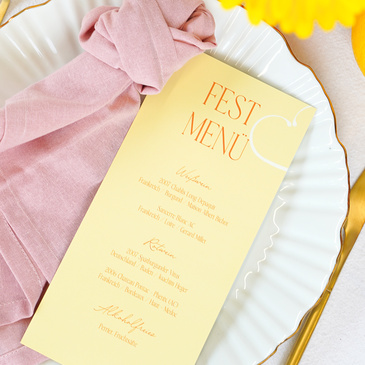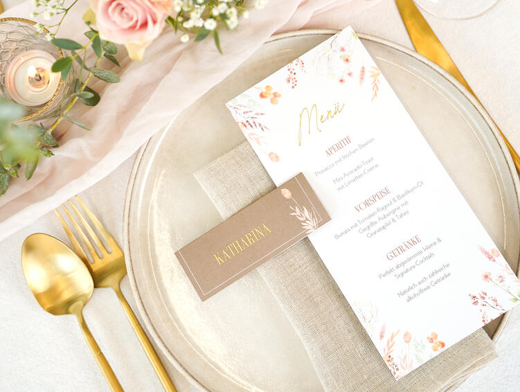 Wenn Eure Gäste an der festlich gedeckten Tafel Platz nehmen, beginnt ein besonders stimmungsvoller Teil Eures Hochzeitstags. Mit harmonisch aufeinander abgestimmter Papeterie und Tischdekoration sorgt Ihr nicht nur für Orientierung, sondern kreiert auch eine einladende Atmosphäre, in der sich alle sofort wohlfühlen.