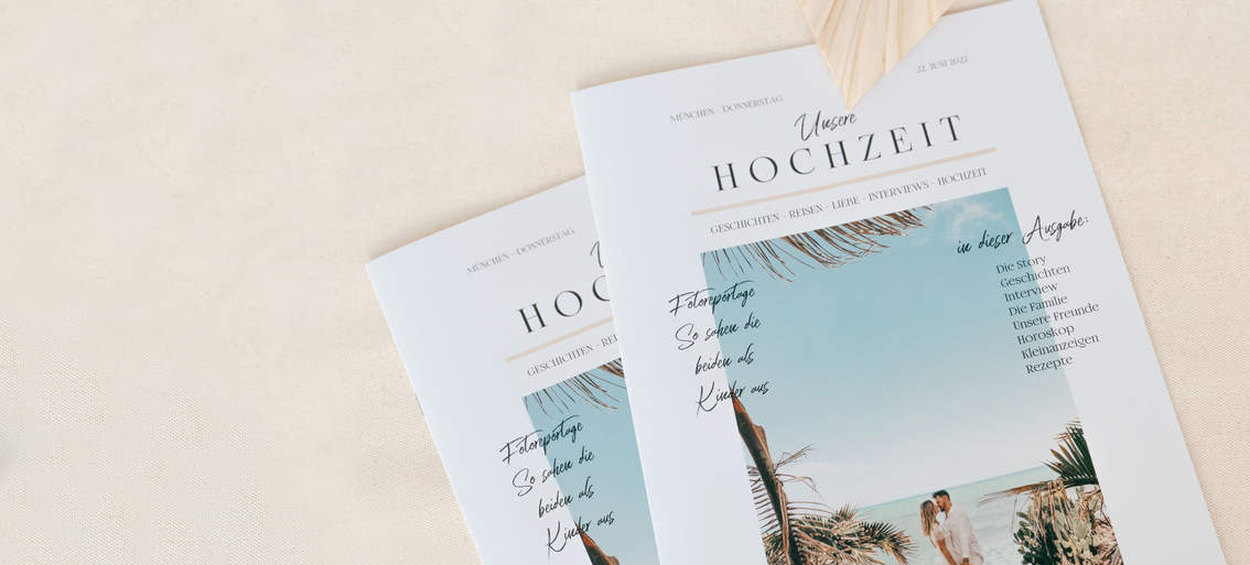 Von den ersten Schmetterlingen im Bauch bis zum feierlichen Versprechen für die Ewigkeit: Unsere personalisierbare Papeterie bietet Euch die Möglichkeit, Eure Liebe mit persönlichen Worten und Bildern zum Ausdruck zu bringen. Entdeckt die große Gestaltungsvielfalt und macht Eure einzigartige Lovestory für Eure Hochzeitsgäste auf besondere Weise erlebbar.