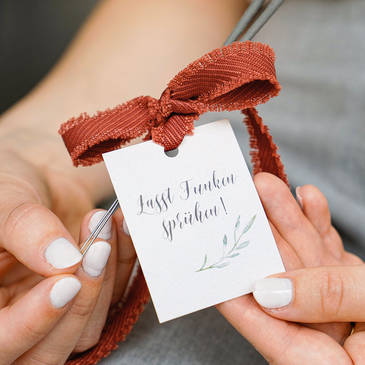 An Eurem großen Tag werdet Ihr reich beschenkt – mit berührenden Worten, emotionalen Umarmungen und ganz sicher auch mit bezaubernden Präsenten. Umso wertschätzender ist es, auch Euren Gästen eine Kleinigkeit zu überreichen, um Euch für ihr Kommen zu bedanken. Lasst Euch von unseren personalisierbaren Geschenk-Accessoires inspirieren und erstellt im Nu individuelle Aufmerksamkeiten für Eure Familie und Freunde.
