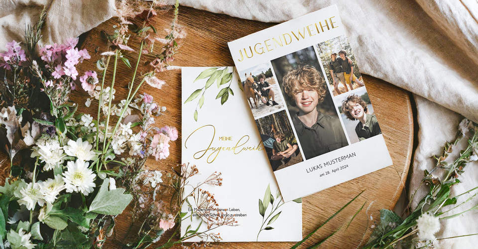 Mit unserem Online-Konfigurator gestaltest Du ganz mühelos originelle Einladungen zur Jugendweihe selbst. Wähle einfach Dein Wunschdesign aus und personalisiere die Karten nach Deinen Vorstellungen: zum Beispiel mit Fotos und persönlicher Anrede der Gäste. Wie das geht, erfährst Du im Folgenden: