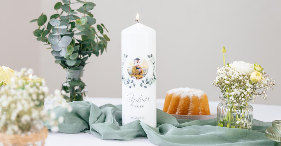 {{block1}} Mit unseren hochwertigen Design-Vorlagen erstellst Du im Handumdrehen eine außergewöhnliche Taufkerze für die feierliche Zeremonie Deines Kindes. Oder gestalte sie als persönliches Geschenk für den Täufling.