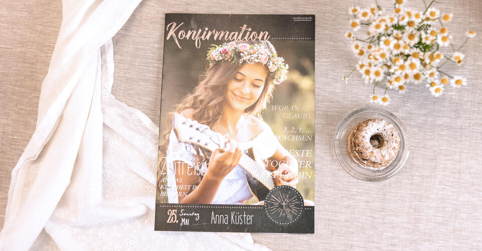 Gestalte jetzt online eine einzigartige Festzeitung mit persönlichen Bildern und Texten als Unterhaltungsprogramm auf der Feier oder als bleibende Erinnerung an die Konfirmation.